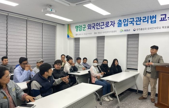 [제주교통복지신문 김강석 기자] 전남 영암군이 지난 19일 영암군외국인주민지원센터에서 이주노동자 50여 명이 참석한 가운데 ‘외국인근로자 출입국관리법 교육’을 실시했다.