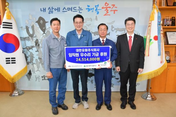 이종백 관리본부장은 “울주군의 복지 향상을 위한 성금을 전달할 수 있어 보람된다”며 “앞으로도 적극적인 사회공헌활동으로 나눔을 실천하고, 지역사회와 더불어 살아가는 기업이 되겠다”고 밝혔다.