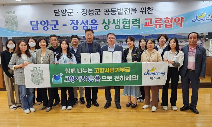 [제주교통복지신문 김강석 기자] 담양군 문화체육과와 장성군 장성읍사무소가 지난 22일 ‘담양군-장성군 고향사랑기부제 상호 기부’에 동참하며 훈훈한 정을 나눴다.