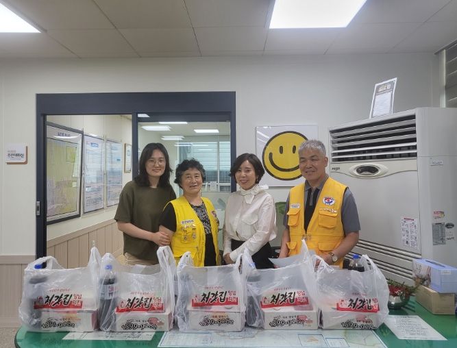 [제주교통복지신문 김강석 기자] 대한적십자사봉사회 동두천지구 엔젤봉사회는 지난 19일 보산동 착한식당인 처갓집양념치킨 동두천1호점에서 후원한 치킨 5세트를 보산동 저소득층 가구에 전달했다.