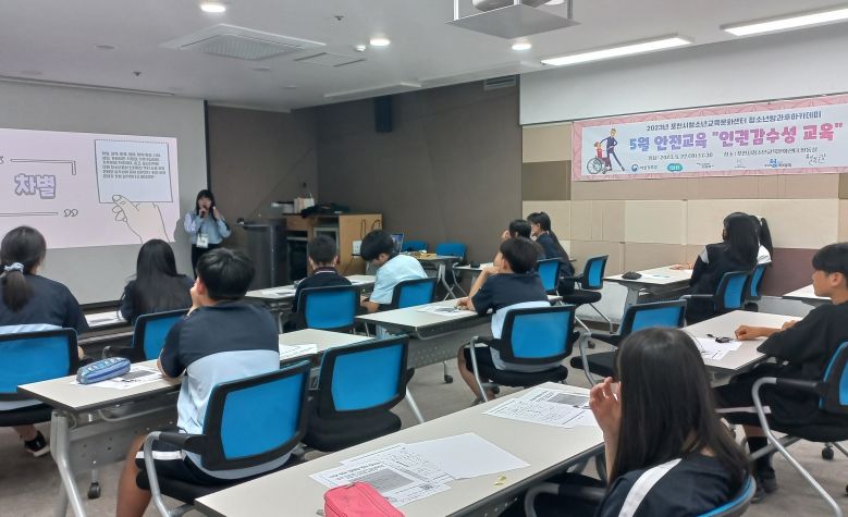 [제주교통복지신문 김강석 기자] 포천시 청소년교육문화센터 청소년방과후아카데미 아름드리는 지난 22일 관내 중학교 1~3학년 50명 청소년을 대상으로 포천시청소년교육문화센터에서 ‘청소년 인권 감수성 안전교육’을 실시했다.