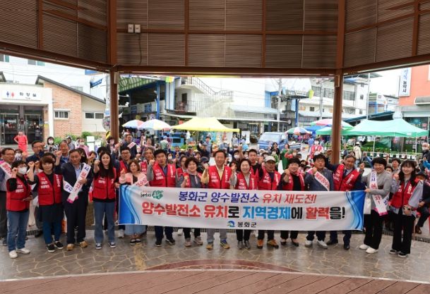 이번 캠페인에는 군청산하 직원 100여 명과 지역 사회단체들이 참여해 봉화전통시장, 전통시장 주변 시가지를 돌며 지역 최대의 성장동력이 될 봉화양수발전소유치를 위한 군민들의 적극 동참을 호소했다.