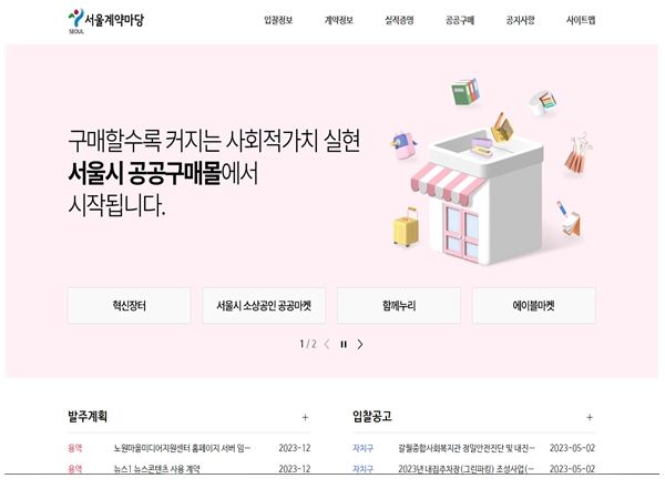 [제주교통복지신문 김강석 기자] 서울시가 서울계약마당을 새롭게 단장하여 5월 22일 19시부터 서비스한다고 밝혔다. 이번 누리집 개편으로 공공구매 활성화를 통해 중소기업 등이 성장하는 데 큰 도움이 될 것으로 기대한다.