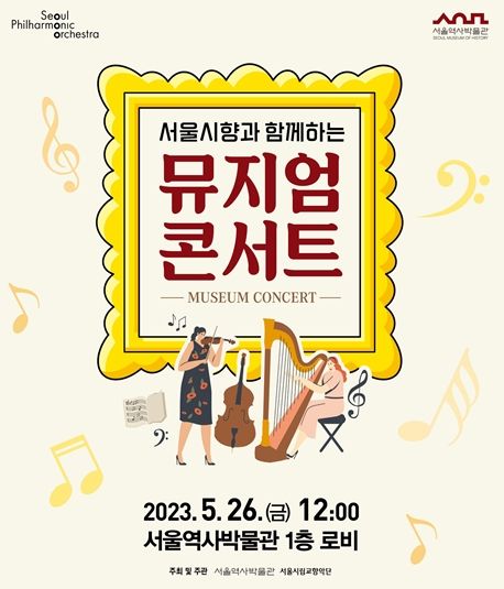 [제주교통복지신문 김강석 기자] 서울역사박물관과 (재)서울시립교향악단이 함께하는'뮤지엄 콘서트'가 2023년 5월 26일 오후 12시부터 박물관 1층 로비에서 열린다. 관람을 원하는 시민은 누구나 박물관에 와서 무료로 자유롭게 즐길 수 있다.