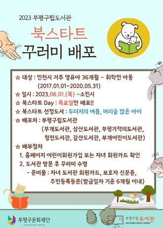 [제주교통복지신문 김강석 기자] 부평구 부평기적의도서관은 다음달 1일부터 인천 거주 중인 36개월부터 취학 전 영유아를 대상으로 ‘2023년 북스타트 3단계 책꾸러미’를 배포한다.