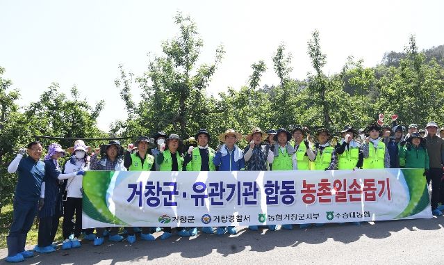 이날 농촌일손돕기에는 구인모 군수, 임영인 거창경찰서장, 이태용 농협중앙회거창군지부장, 김종두 수승대농협 조합장 등 50여 명이 참여해 사과 적과 작업에 구슬땀을 흘렸다.