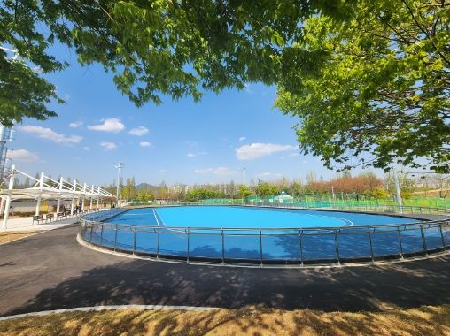 이에 수성구는 문화체육관광부에서 주관하는 2021년도 생활체육시설 확충 공모 사업에 선정돼 총 10억 원(국비 3, 시비 7)의 예산을 지원받아 아크릴 바닥으로 전면 교체하고 안전울타리, 파고라, 조명타워 등의 시설물을 신규로 설치했다.