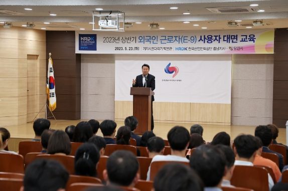 [제주교통복지신문 김강석 기자] 당진시가 23일 기지시줄다리기박물관 강당에서 한국산업인력공단 충남지사와 함께 외국인 근로자(E-9) 대면 교육을 실시했다.