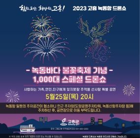 한편, 군 관계자는 드론쇼 공연은 녹동항 어디서나 관람할 수 있고 호우, 강풍 등 기상악화로 공연이 연기되거나 취소될 수 있으니, 사전에 고흥군 공식 홈페이지 등을 통해 수시로 확인해 줄 것 당부했다.