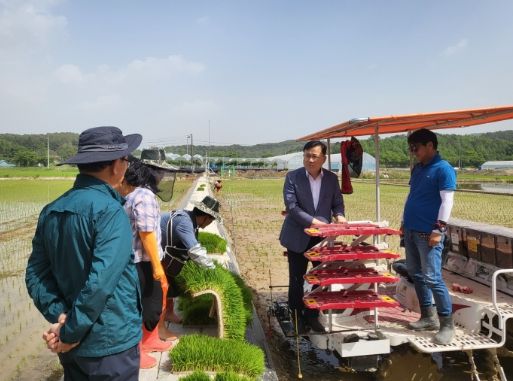 농업인을 만나 구슬땀을 흘리는 농업인들을 격려하고 애로사항을 청취함은 물론, 영농기 용수공급에 차질은 없는지 영농상황을 직접 점검하고 농기계 안전사고에도 주의할 것을 당부했다.