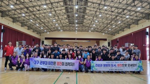 [제주교통복지신문 김강석 기자] 영천시 체육시설사업소는 23일 금호체육관에서 직원 및 영천소방서 직원 150여 명이 참여한 가운데 영천 주소갖기 및 대구 군부대 영천 유치 홍보 캠페인을 실시했다.