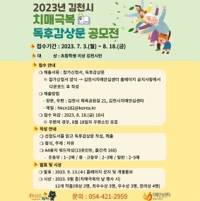 [제주교통복지신문 김강석 기자] 김천시보건소 치매안심센터는 오는 7월 3일부터 8월 18일까지 초등생 이상 김천시민을 대상으로 치매 인식개선 독후감 공모전을 개최한다.
