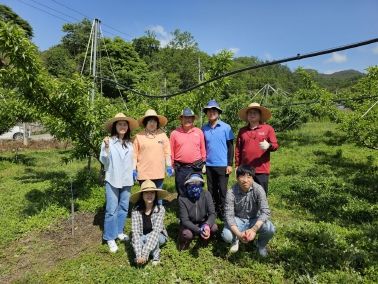 더운 날씨로 적과 작업은 쉽지 않았지만 인력 구하기에 어려움을 겪고 있는 복숭아 재배 농가를 생각하며 적과 작업에 최선을 다했다.