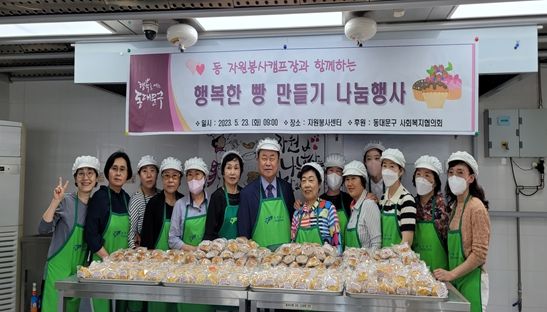 동대문구사회복지협의회의 후원을 받아 진행되는 ‘행복한 빵 만들기’ 행사는 지난 4월 28일에 이어 이번이 두 번째로, 자원봉사자들의 따뜻한 손길로 탄생한 약 500개의 ‘행복한 빵’은 당일 복지시설 및 취약계층 어르신가구 80여 곳에 전달됐다.