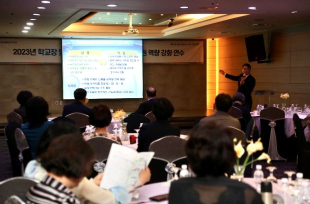 울산시교육청은 23일 남구 문수컨벤션에서 울산 지역 전 학교장과 교육장 250여 명을 대상으로 ‘2023년 학생맞춤통합지원 역량 강화 연수’를 했다.