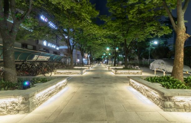 아울러 야간에도 안심하고 다닐 수 있도록 보안등 등주와 화단 간접조명을 밝게 개선했다. 심미적인 요소가 더해진 화단 간접조명은 야간이면 은은한 빛을 뽐내며 마치 갤러리를 거니는 듯한 느낌을 준다. 뿐만 아니라 구는 해당구간이 학생들이 많이 다니는 점을 반영, 화강석 표면과 모서리를 가공해 미끄럼 사고를 방지하는 데 중점을 뒀다.