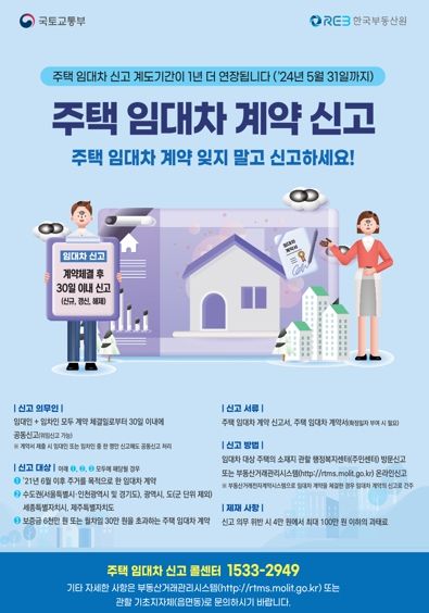 2021년 6월 1일부터 시행한 ‘주택임대차 신고제’는 제도 도입에 따른 국민 부담 완화와 행정 여건을 고려해 2년간인 31일까지 계도기간을 운영했다.