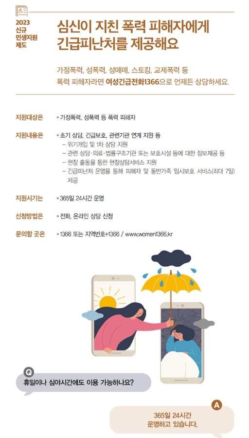 · 1366 또는 지역번호+1366 / 여성긴급전화1366 누리집