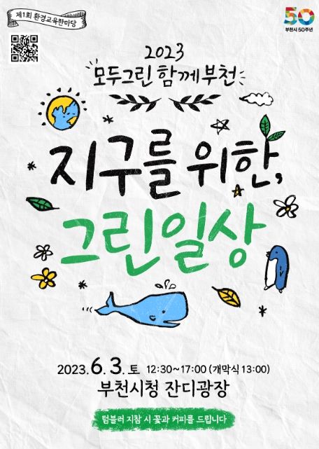 아울러, 시는 6월 5일 ‘세계 환경의 날’을 포함한 오는 6월 3일부터 10일까지 제2회 부천 환경교육주간으로 정하고 운영한다. 이 기간에는 ‘모두그린 함께부천’ 행사를 비롯해 관내 청소년을 대상으로 ‘2023 탄소제로수호대 캠페인’과 친환경 유용 미생물(EM)을 이용한 ‘부천시민 친환경생활 공유 이벤트’를 펼칠 예정이다.