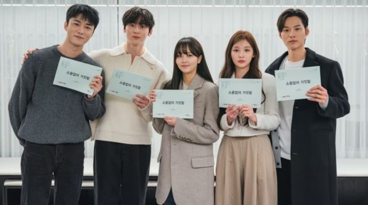 tvN 새 월화드라마 ‘소용없어 거짓말’(연출 남성우, 극본 서정은, 기획 스튜디오드래곤, 제작 빅오션이엔엠) 측은 24일, 시작부터 설렘 포텐을 터뜨린 대본 리딩 현장을 공개했다. 보는 것만으로도 훈훈한 배우들의 케미스트리가 기대감을 한껏 끌어올린다.