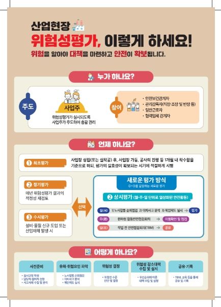 또한, 고용노동부는 6월 말까지를 “새로운 위험성평가 집중 확산 기간”으로 정하고, 이번 현장점검의 날에는 사업주·근로자의 인지도를 높이고 도입을 장려하기 위해 전국적으로 약 1,600명의 인력을 투입해 산업단지 인근이나 건설현장 밀집 지역 등에서 위험성평가 실천 캠페인을 진행했다.