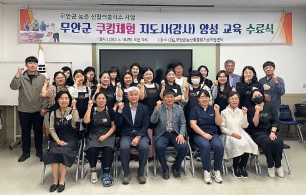 [제주교통복지신문 김강석 기자] 전남 무안군과 농촌신활력플러스사업추진단은 지난 18일에 무안군농산물종합가공지원센터에서 ‘2023년도 요리 체험 지도사(강사) 양성 교육’ 수료식을 진행했다.
