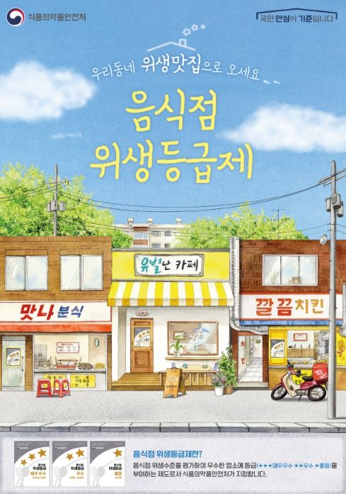 음식점 위생등급제는 일반음식점, 휴게음식점, 제과점의 영업자가 위생등급 지정 신청서를 제출하면 한국식품안전관리인증원에서 음식점의 위생 관리 수준을 평가해 ‘매우우수(★★★), 우수(★★), 좋음(★)’ 등급을 부여하는 제도이다.