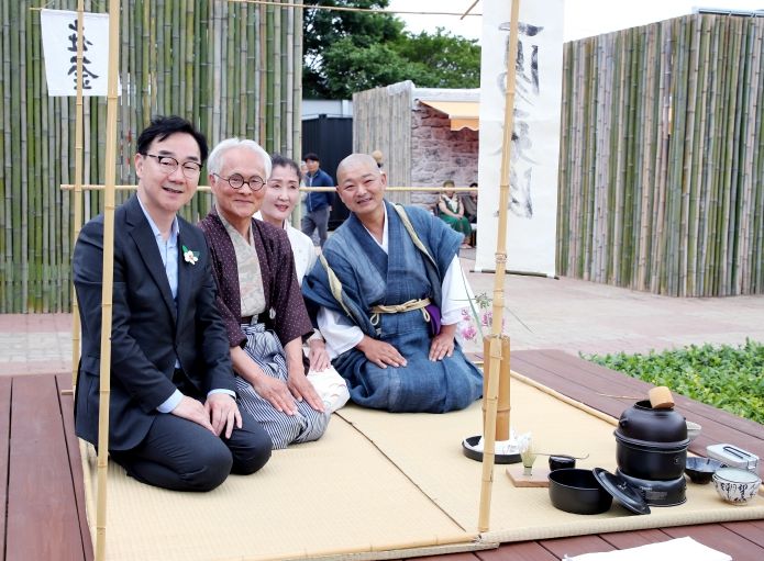 [제주교통복지신문 김강석 기자] 2023하동세계茶엑스포 세계茶문화교류 일환으로 일본 교토 대덕사(京都 大德寺) 전통 대나무 다실을 재현하고 일본 차문화를 감상하는 특별전이 5월 22∼24일 하동군 화개면 엑스포 제2행사장에서 열렸다.
