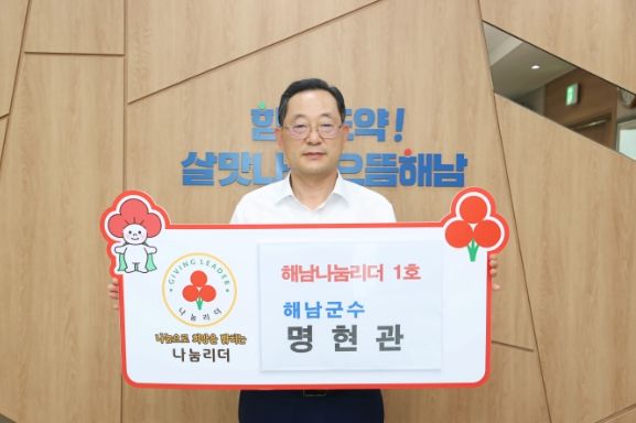 [제주교통복지신문 김강석 기자] 명현관 해남군수가 지역 나눔문화 확산과 개인 모금 활성화를 위한‘나눔리더’에 해남 1호로 가입했다.