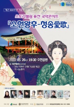 청송문화관광재단 이사장인 윤경희 청송군수는 “개군 600주년을 맞아 소헌왕후 스토리텔링 퓨전 국악콘서트를 통해 청송 심씨 소헌왕후의 삶을 재조명하여 지역의 문화자원을 알릴 계획”이라고 말했다.