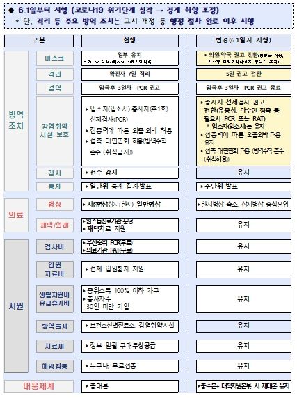 시는 의료대응 체계, 치료비 등 정부지원은 국민부담 경감과 건강 피해 최소화를 위해 로드맵에 따라 추진하는 한편, 고위험군 등 취약계층 보호는 강화하고 코로나 관련 검사·치료 지원은 당분간 유지할 계획이다.