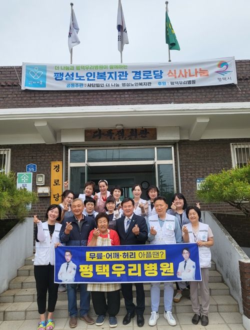 이번 경로당 식사 나눔을 후원한 평택우리병원은 관절, 척추질환 특화병원으로 비전동에 위치하고 있으며 지역사회 내 이웃에게 도움과 나눔을 꾸준히 실천하고 있다. 봉사를 진행한 사단법인 더 나눔은 어르신을 존중하는 마음으로 어르신의 삶의 질과 복지증진 프로그램을 개발하고 실천하는 봉사단체로 지역사회에서 소외당하는 어르신들과 아름다운 동행을 하고자 ‘효자 효부의 발굴’, ‘추억 사진 만들기’, ‘방문 말벗 지원’ 등 다양한 봉사활동을 통해 나눔 문화 확산에 이바지하고 있다.