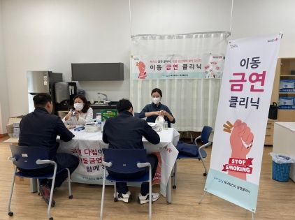 ‘이동 금연 클리닉’은 금연 의지가 있으나 여건상 보건소를 방문하기 어려운 직장인들을 위해 사업장에 직접 찾아가 금연 상담, 교육, 검사 등을 지원하는 프로그램이다.
