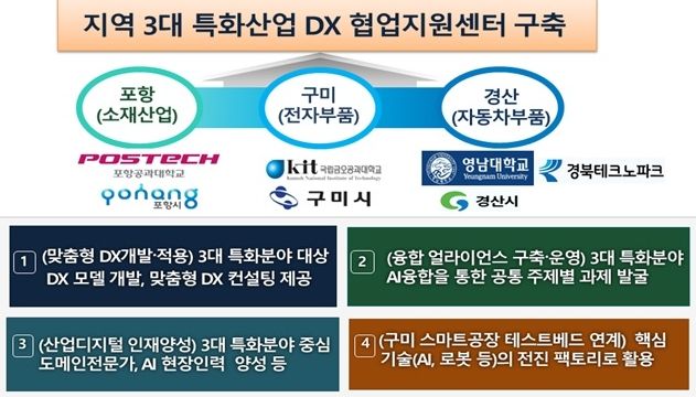 센터는 금오공과대학교 내에 설립되며, 산업 디지털 전환 추진의 다양성·창의성·전문성 확보를 위해 운영기관 외에도 경북 3대 주력 산업군(IT융합(구미), 첨단소재(포항), 모빌리티(경산)) 관련 지역의 연구·지원 기관이 협력기관으로 참여하게 된다.