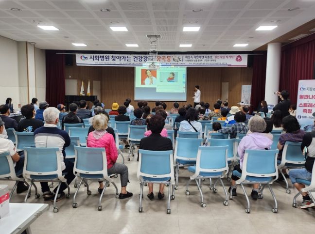이날 동 행정복지센터 3층 강당에서는 시화병원 구민우 뇌졸중센터장이 진행한 ‘머릿속 시한폭탄 뇌졸중, 골든타임을 지키자!’라는 주제의 건강강좌와 함께 주민들과 질의 응답하는 시간이 마련됐다.