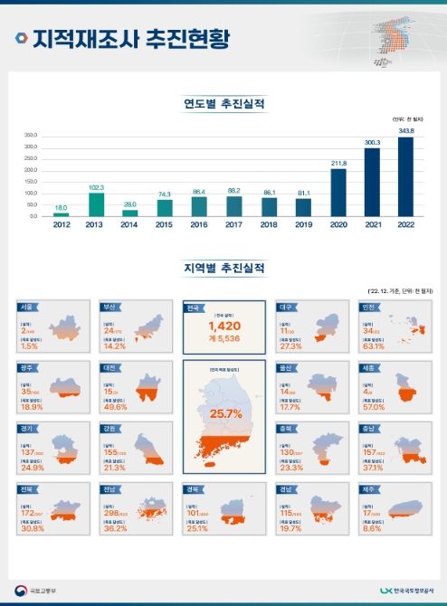 한편, 지난 5월 9일(화) 부위원장인 문성요 국토도시실장 주재로 열린 ‘중앙지적재조사위원회(위원장: 국토교통부 장관)’에서도 중앙과 지방이 함께 지적재조사사업을 보다 체계적으로 수행하기 위해서는 ❶첨단기술과 융합한 사업구조 혁신, ❷지역별 문화와 역사적 자산을 융합한 사업모델 확산 등을 중점적으로 추진할 계획이라고 밝혔다.