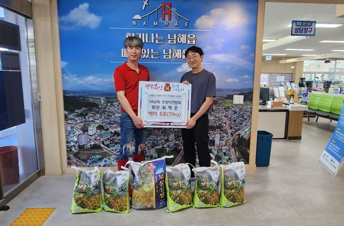 [제주교통복지신문 김강석 기자] 남해74호랑이연합회는 지난 23일 남해읍행정복지센터를 방문하여 이웃돕기 쌀 6포를 기탁했다.