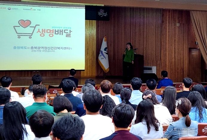 이날 교육은 충북광역정신건강복지센터 조연주 자살예방상임팀장을 초청해 직장인 스트레스 관리와 생명지킴이 양성 교육인 ‘생명배달’(‘생’생하게 듣기·‘명’확하게 묻기·‘배’려 깊게 반응하기·‘달’라지도록 돕기)에 대한 특강이 이뤄졌다.