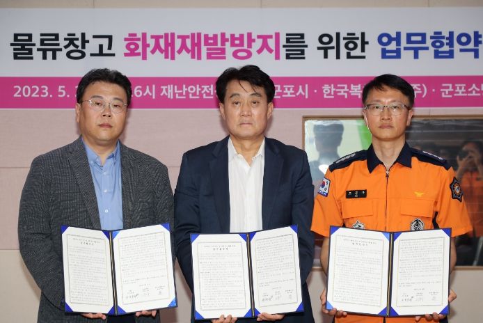 [제주교통복지신문 김강석 기자] 군포시는 5월 24일 시청 재난상황실에서 물류창고 화재재발방지 및 피해 최소화를 위해 한국복합물류(주) 및 군포소방서와 3자간 업무협약(MOU)을 체결했다고 밝혔다.