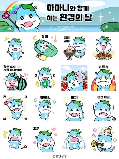 하마니 이모티콘은 환경에 국한되지 않고 함안군의 특산품이자 생태관광자원인 함안수박과 함안곶감 등을 활용해 사랑, 축하, 감사 등 16가지 감정을 표현했다.