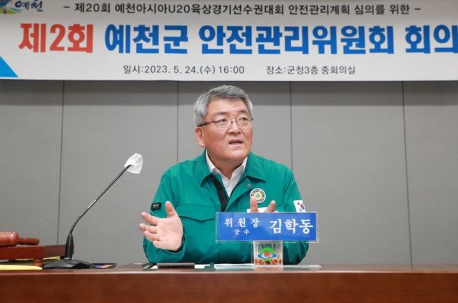 김학동 군수는 “제20회 예천아시아U20육상경기선수권대회는 예천에서 처음으로 개최하는 국제 대회로 국내‧외 임원 및 선수를 비롯해 많은 관람객이 참여할 것으로 예상된다.”며 “안전사고 예방과 현장 여건에 맞는 신속한 대응체계를 구축하고 대회 안전관리에 최선을 다해주시길 바란다.”고 당부했다.