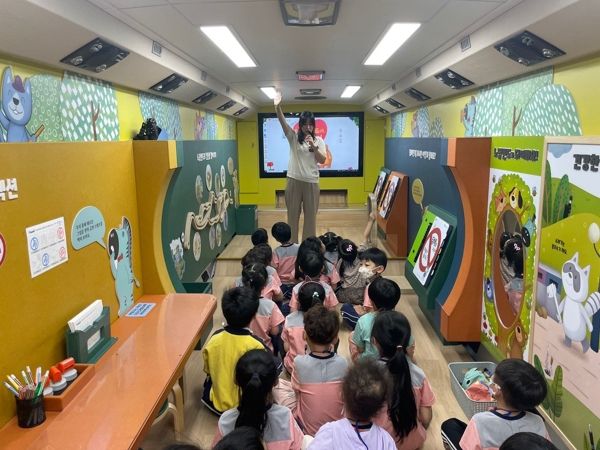 24일은 낙동강체육공원 제1주차장, 25일은 선산읍 단계천 공영 주차장에서 유치원 및 어린이집 10개소의 만 3~5세 유아(200여 명)를 대상으로 체험 버스형 교육으로 운영됐다.