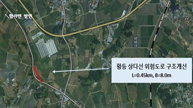 이번 공사는 도로의 선형을 개량하고 교통안전 시설물 등을 확충해 교통사고 예방과 지역주민의 교통편의가 증진될 것으로 보인다.
