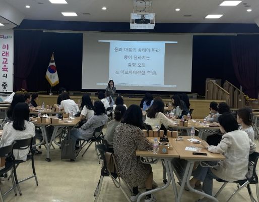 이 프로그램은 교육활동 침해, 직무 스트레스 등을 겪은 교원이 감정 오일을 통해 자신의 몸과 마음의 상태를 파악하고, 자신에게 맞는 감정 힐링 향수를 만들며 심리적 안정을 회복하도록 돕기 위해 진행하고 있다.