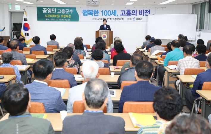 [제주교통복지신문 김강석 기자] 고흥군은 25일 (사)대한노인회 고흥군지회 부설 노인대학(원) 강의실에서 노인대학생 100여명이 참석한 가운데 ‘행복한 100세, 고흥의 비전’이라는 주제로 특강을 실시했다.