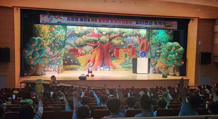어린이들은 양일간 공연장에서 인형극 속 캐릭터의 노래와 율동을 따라 하면서 재미있게 올바른 손 씻기 방법을 터득했다.