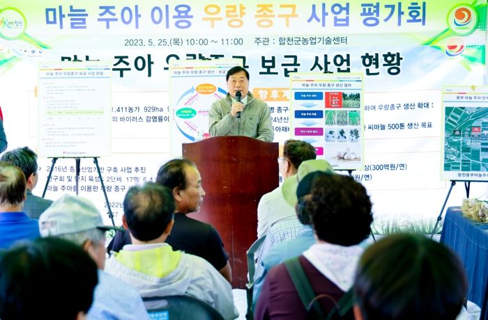 김윤철 합천군수는 인사말에서 “오늘 평가회를 통해 합천군 전체 마늘 종구가 우량한 종구로 갱신될 수 있는 기회가 되시기를 바란다”며 “마늘 재배 농가가 웃을 수 있고 지역 경제에도 활력을 불어넣을 수 있도록 다 함께 노력해 나아가고 있다”고 말했다.