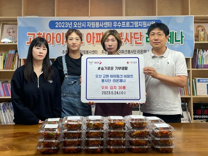 라온제나 봉사단(대표 김샛별)은 자원봉사자를 모집해 지역의 어려운 이웃들을 위해 봉사활동을 이어가고 있으며, 이번 오이김치 역시 관내 저소득층 및 사례관리 대상자 주민에게 소중히 전달될 예정이다.