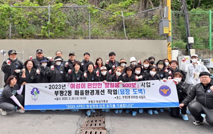 이날 행사에는 부평구, 부평경찰서, 인천가톨릭대학교, 여성친화도시 서포터즈, 부평2동 주민참여단 등 민·관·학·경 30여 명이 협력해 마을환경 개선사업을 진행했다.