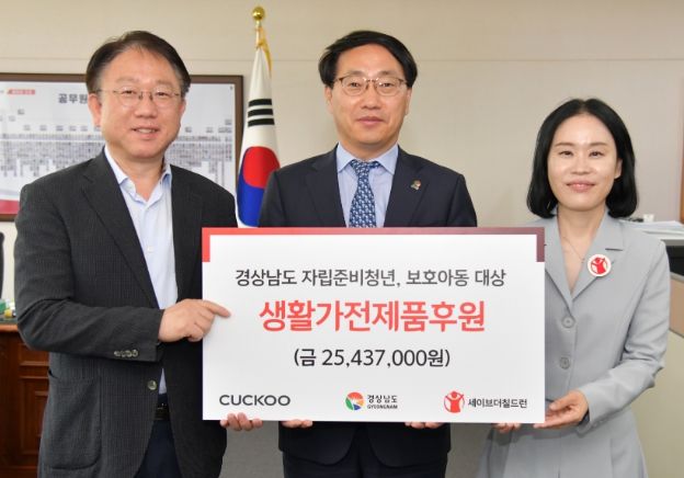 [제주교통복지신문 김강석 기자] 경남도는 25일 오전 도청 행정부지사실에서 쿠쿠사회복지재단과 세이브더칠드런과 함께 자립준비청년과 보호아동 지원을 위한 후원 물품 전달식을 가졌다.
